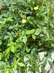 鉢植えで4年、全く咲かないモッコウバラ😭半年前に地植えに引越ししたらモリモリ大きくなり蕾がーーーー😆初めて蕾ついて喜んでいました。てっきり白いモッコウバラと思ってたら黄色い花が咲きました💛🌼5年目にしてやっと咲いてくれた我が家のモッコウバラ🤲´-