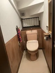 トイレリフォーム ① 汚れた壁紙にペンキを塗るよ。新聞紙で覆う。なかなか難しくて、この時点で心折れてる😮💨ペンキ塗り始めたら楽しくなってきた😆収納も木目調に。でも難しくてお手上げ。カフェカーテンで隠しちゃお。ペーパーホルダーもカッコイイのに変えたよ。ここで力尽きた🤪床はまた来週。