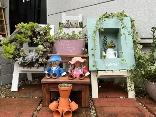 台風の影響がなさそうなので昨日、台風に備えて避難していたグリーンやお花の設置を変えてみました。 玄関前にたくさん置いてあったのを花壇に置いて広くなりました。 台風のことを考えて何かDIYしてみたいなって思っています。 その前に花壇の