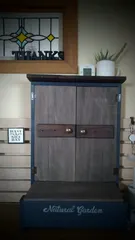 以前WSで作ったプランターカバー。もちろんお庭で使ってましたが庭から撤収😅よーく洗って乾燥させてからリメイクしました。玄関にあったお出かけ時に必要なものをひとまとめ。置き場が玄関なので丸見えは困るから扉で目隠ししました。