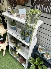 足場風三段ラック 作ってきましたよ〜✨かなり大きくて重圧感ありたくさんの鉢が置けますね🌱人気みたいで満員の作業でアドバイザーさん大変そうでした💦庭の広さがあれば二つ三つと並べて置きたいです。色は木目が見えないピュアホワイト✨今月は3つの作品を作りましたが1つは大物のベランダ収納庫だったのでWS予算オーバー😅旦那さんに