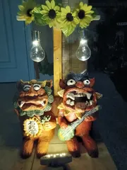 シーサーが手作りにびっくり🫢素敵です💕 100均のライト、ソーラーの物ですかね⁉️ ソーラーのだと、ちょっと暗いですよね💦