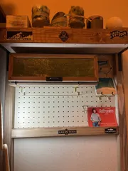 ツールワゴン上段アレンジその1 先日作ったツールワゴン上段。 有孔ボード部分にちょっとした小箱を作って取り付けてみました。こんな箱です材料は100均のプラダン、ガラスシート、コルクボード、取手、蝶番とこれ。 これが良い仕事をしてくれました箱って一から材料切り出して作るのが面倒ですが、これを使うとそんなストレスか