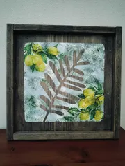B&B フレーム付きサインボード Boho Leaf/ボヘミアン風の葉 B&B フレーム付きサインボードを作成しました😆 Boho Leaf/ボヘミアン風の葉です。今回はちょっと試したい塗料があって。DAISOのモルタルペイント塗料です。デザインがシンプルなので少し凹凸をつけたら面白いかなと。その上からデコパージュも施しました🤭夏らしいサインボードになりました👍