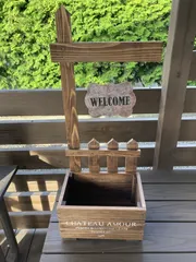100圴のwelcomeボートをサビ風にして、手作りした花入れに飾ってみました。