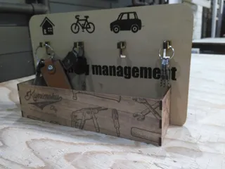カインズ沼津店さんでレーザー加工機をお借りして作成してみました。玄関横に置いて、鍵とボールペンの定置管理しようかと思います。