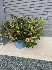 金木犀が満開 自宅の金木犀がやっと満開になりました😃バランスが悪くはみ出した部分を伐採して、玄関に飾りました。玄関がいい香りプンプンです😌逆光😢作業後はカインズで購入のスプレーでメンテ灰汁が浮き出ますキレイキレイ👍