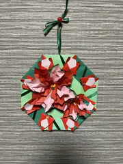 クリスマスりーす 折り紙でクリスマスリースを作りました