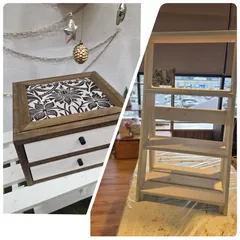 NEW お気に入りの塗料を使った最近のWS 作品 私のお気に入りの塗料はkumimoku のウォルナット🤎と超撥水のホワイト🤍です 自宅にも常備してます💕ウォルナットのグリーンがかった色🥰ホワイトの拭き取った後の木目🥰 大好きな塗料です😊🩷