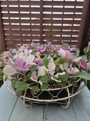 NEW 種から葉牡丹💚💜その後② 現在↓ ↑ ↑10月頃リングリースに直接種蒔きしました アイキャッチと1枚目の画像が現在ですホワホワっと可愛くなってます💚💜🤍