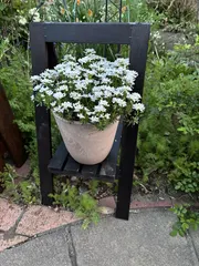 イベリスの白い🤍花とフラワースタンドの組み合わせが お庭に映えて、とっても素敵ですね💞