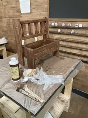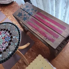 木製の小さなベンチ…塗り替えしたら見違えました🩵ワイヤーやブリキの小物は錆びて穴凹空いて…塗り替えしたらまだ使える…捨てないで良かった✌️