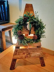■カインズ工房 リーススタンド■ブラックのペンキが弾いてしまうので、丁寧に色を重ねて塗りました。自分でノコギリでカットする作業が大変だったけれど何回もの作品を作っているうちにノコギリの扱いにも慣れてきました。※以下カインズクリスマス部門のみ入力■使用した商品