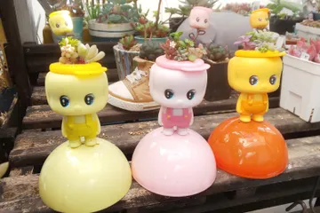 ガチャしたフキエくん蓋の帽子に穴の大きさに合わせてカッターで切り抜きミニミニキフエくんはは穴あけてワイヤーをグサッ!と刺してピックにし、水はけ穴を数ヶ所あけて目はシールなので、はがれないように接着剤で付け、更に上から保護で塗りました!!さぁ、これで多肉を植える準備が完成😆🙌植えたのは夏でだいぶ傷んで