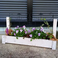 NEW リバーシブルアイアンプランター チューリップの球根仕込んで真ん中のポットは挿し木した苗ヘデラリシマキアミッドナイトサンリシマキアヌンムラリアオーレアと名前わからないけれどハーブが根付いたので、植えました!鉢底浅いけれど、水仙を植えて咲いた(はず😆) ↑先回のプランターの写真(今年の4月)