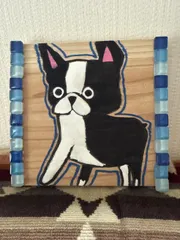 ■作品内容 ドッグハウスをイメージして可愛い💞色合いでペイントしてみました ■作品のこだわりポイント愛犬のイメージと、足型のステンシル型を作りカラーは優しい色合いにしました✨ 家の下に揺れる足型ハートがポイントです✨
