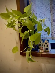 先輩にいただいたポトスを水耕栽培してます。久しぶりの挑戦です。隣りに釣りをしている猫ちゃんを飾ったら大樹のようになりました