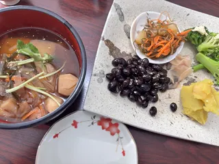 ■作品内容朝用にお雑煮と少しのおせち三品■工夫ポイント昨夜から仕込んでたお雑煮の汁。 昆布出汁で優しい。黒豆、きんとん甘さ控えめ。