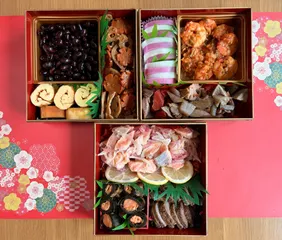 ■作品内容おせちを作りました!■工夫ポイント伊達巻、昆布巻き、きんぴら、豚の塩胡椒焼き、サーモンマリネ、黒豆、筑前煮、エビチリを作りました!昆布巻き、黒豆は圧力鍋で作り、豚の塩胡椒焼きはオーブンで。サーモンには赤タマネギを入れるとサーモンがうっすらピンク色に💕エビチリは豆板醤で少し辛めに!家族で楽し
