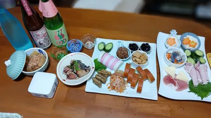 ■作品内容毎年お節予約してましたが残ってました。今年は簡単で残らないお節にしました。お正月らしく並べてみました。■工夫ポイント食べやすいようにお皿に、蓋物などの食器を工夫しました。あとお雑煮で完成。お酒も大好きな山名酒造(兵庫)のお酒と新潟県のお酒、越後鶴亀のしぼりたて揃えました😁 &nb