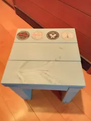 ワークショップでもらったシール 以前作ったベンチにシール貼ってみたよ