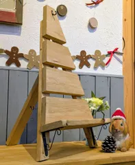 ■作品内容リーススタンドのWS後に工房利用でアレンジしてきました✨■工夫ポイント・リースを持っていないので、小物が置けたらいいなと思い棚を付けました。・ワンバイ材を留めただけですが、可愛い棚受けで作品がより良く仕上がりました✨・そして1番のこだわりは、ワンバイ材の節です✨ カッコよく見える所に節が来