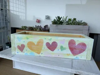 スモールボックス 1ヶ月に1度のスモールBOX色遊びが楽しくって童心に帰れる最高😀の時間今回はハート💕いっぱいでウキウキです色をつけてはサンダーで削って色を重ねて、、、おもしろい表現ができたと思います
