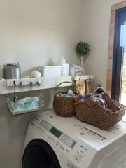 洗濯機脇の壁に洗剤用の棚を付けました😊 ミルク缶みたいな入れ物に入った「とみおかクリーニングの洗剤」は、ネットで見つけました。あんまりかわいいミルク缶(๑♡∀♡๑)すでに見た目でトリコになりましたが、説明を読むと洗剤としても、かなり優秀👏 今までは、ジェルボールをポンしてましたが