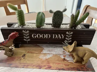 🪴横長プランターとサボテンの寄植え🌵 裏面にもステンシル…ねかせてできずちょっと失敗です😔