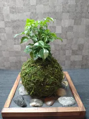 【乾燥苔で苔玉作り】 母と一緒に行ったGWSで作った苔玉です😊植物名は忘れてしまいましたが、グリーンがツヤツヤしていたので選びました✨。泥団子状にしたものに、苔を巻いて行くのですが、なかなか丸くならず苦戦💦。でも、楽しかったです😊。台は目地材に石を埋め込むのですが、石選びとバランスが難しい💦センスが問われます😅。ワタシ的