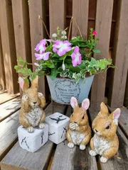 何もかも初めての私でも、先生の丁寧なご指導で、出来上がりました😆❣️お花を選んで、スタートです☺️まだお花の成長途中で植えつけるので、お花の特徴をわかっていないと難しいんですね💦色々勉強させていただきました📝👓️🐰さん達は、全部お店のコです😅先生の「自由に好きな所に連れてって撮影してくださ~い🧑⚕