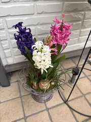 球根の寄せ植え咲きました💕 ヒヤシンスが咲きました💕ピンクが2つも😳‼️