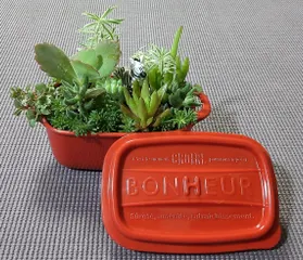 どうぶつがかくれています😉 100均で見つけた赤いお弁当箱に寄せ植えしてみました💕なんだかブッシュみたかったのでフィギアをおいて更にチマチマしていたらどんどん隠れてしまいました😓