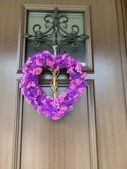 ぷりぷりさん コメントありがとうございます😊 大親友からのプレゼント🎁 スターチスのリースで、親友が枝をハート♥️形にしてスターチスを飾り、全部一人で作成しています。 私には出来ません! とても可愛い💕くて、すぐに玄関に飾りました。 近所の人からも、ステキねと言われ、又、嬉しいくなってしまう自分が