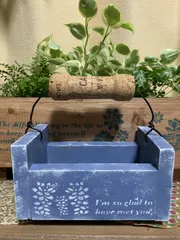 蒲鉾板と端材で箱を作りました②①と同じものを色とステンシルを変えて🩵作りました こちらも調子のって汚しすぎました🤣