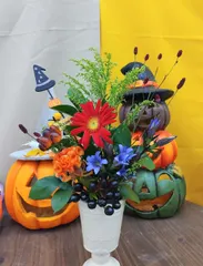 ハロウィンのアレンジメント イオン園芸店でのWSで作ったアレンジメントです☺️