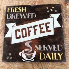 ミニサインボード♪② 珈琲いかがでしょう♪ そんなドラマがあったわねぇ。あの青山君に言われてみたいわ💕今日は前橋吉岡店でミニサインボード。いつも美味しい珈琲を淹れてくださる旦那様へのプレゼント🎁←かなり口実! ガンガン!トンカチの音を響かせて、あぁ「カ・イ・カ・ン」←ひろこちゃん風に。 ステ