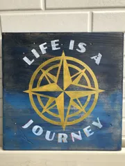 夏のDIY2022【ミニサインボード】 8月最後のWSです。とても楽しい時間をありがとうございました。⚠️真ん中の方位のマークの色⚠️ PEN CUREのパールゴールドを持込使用 させて頂きました ゴールド塗る前に下地として、イエロー を塗りました