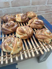 カルダモンロールの復習 久しぶりに食べたくなって、自分パン焼きました✨ この成型初めてしたとき苦戦、でもやりだすと楽しい💕忘れないために復習 シナモンロール大好きな私、でもカルダモンロールに出会ってこっちのほうが好きかも🤭