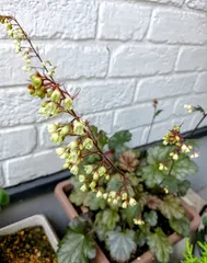 ヒューケラの花、初めて見ました。可愛い花です。 日陰でも丈夫、葉っぱがきれい、寒さに強い。私向きだなと買ったヒューケラが花でも楽しませてくれています。可愛くて他の色も欲しくなりますね。ベビー苗で買った紫陽花「ブライダルシャワー」にもちっちゃな蕾。コレも嬉しいなぁ🩷