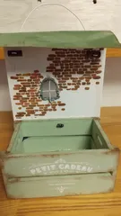 自己流🏠プランター①完成 BOX棚の底を剥がしたベニヤ板屋根は🍺アルミ缶木箱の色のアクリル絵の具がなかったのである色を混ぜて似たような色を作って屋根に塗りました😁毎日少しずつ💦なんちゃって🏠型プランター✨達成感🎉ヤッター窓が難しかった😅💦窓枠はモルタル風塗料を塗ってワイヤーを埋め込みました😄耐久性は弱いと予測していますが、な