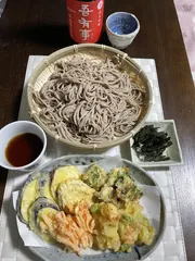 週末の夕飯 お蕎麦も天ぷらも久しぶりふだん何気に食べてる野菜が天ぷらにすると更に美味しくなるのが不思議です乾杯🍶