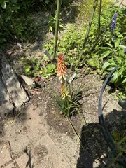 オレンジバニラポプシルクを植えました ミントを撤去して、深く掘り下げて、ミントの根っこを出来るだけ取り除いて、この子を植えました。 昨日行った園芸店は、他の園芸店には無い珍しい物が沢山販売されていたので、この子を育ててみようと購入したのです。へ別名 トリトマ ともいいます。770センチ位にまでなりまして、耐暑性強く、常緑でありなが