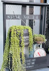 ワイヤーフェンス付きプランター ワークショップデビュー作品です。 グリネさんの指定席となりました。 グリネの滝がわしゃわしゃと流れております。 素敵なワークショップに出会えて感謝です❤️