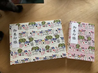 毎月市内にあるお寺に御朱印を拝受しに行くのですが、こちらのお寺は見開きの御朱印が多いのですぐに御朱印帳が一杯になってしまってて💦 で、やっと見開き御朱印帳を作りました🤗 もちろん大好きな猫柄で🐱これは猫の日の御朱印です🐱↑↑↑普通の御朱印帳だとこんな感じで2枚使うんです💦&nbs