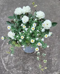 とーみさん、こんばんは✨ 白のミニバラと花かんざしの寄せ植え、とっても可愛いですね😍❤️