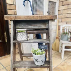 アンティーク風ステップラダーをDIY。普段は玄関先のグリーン棚にしていますが、この時期は傘立てとして大活躍。裏からみたらこんな感じ丸棒にウォールネットをつけて傘立てのフレームにして目玉クリップの目玉をビス留めして挟んでいますカインズでハンズの折り畳み傘、買っちゃった!鍵開けるとき、荷物置きにも重宝し