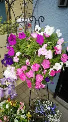 ペチュニアのハンギングバスケット 4/20にGreenStyleさんでつくった、ペチュニアのハンギングバスケット! 2カ月弱で、こんなに立派になりました(^_^)V 玄関を素敵に飾ってくれてます!