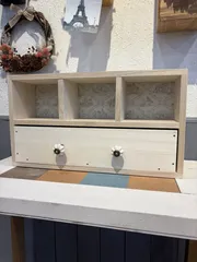 〜引き出し付き飾り棚 〜前橋小島田店オリジナル初めて見本見た時から作りたい❤️と思っていました 予約取れた日からず〜っと今日までイメージ通りに仕上がるかな〜って😊リメイクシートも取っ手も塗料も色々買い揃えて😊🎶無塗装です♪大きさは6ドロワーと同じサイズ🎶重ねられる❤️大きい引き出しがとても