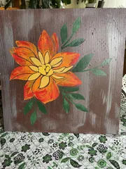 今日は思う様な色味が出ない💦😂為か心までがパッとしません😭原因は後で判明しました。お花🌼を先にやる時に白で先に塗るべきでした💦👍🤪まだまだ未熟者ですが、サインボード作りは本当に楽しい時間ですね👍コウモリ講師、かめさん、まさちんさん🥰大変お疲れ様でした。ありがとうございました😊また〜ね😘